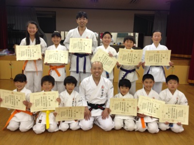 先日の昇級審査で全員合格し、賞状と帯が授与されました。